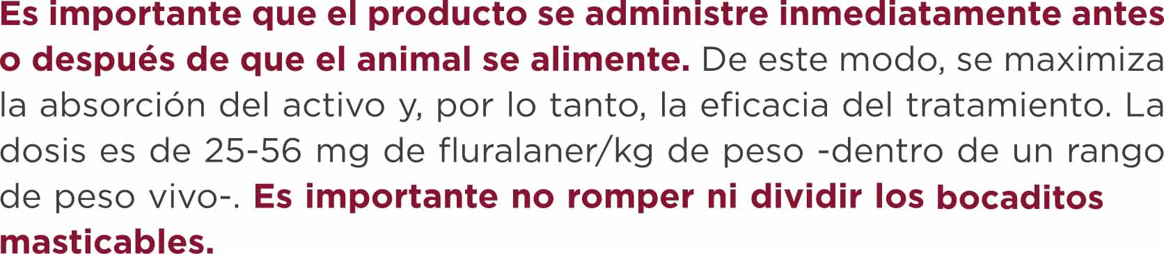 | Presentación | mg de Fluralaner por comprimido | Dosis |
